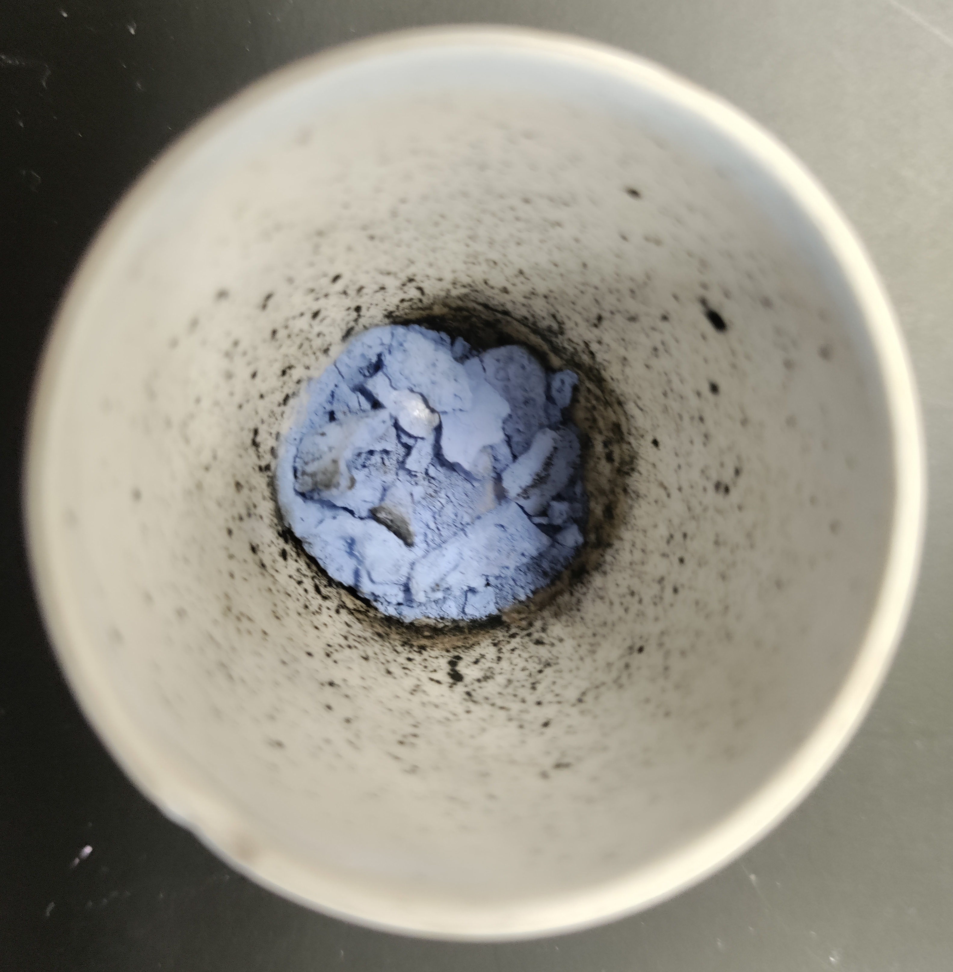 1. Once the crucible is cool, mass the sample and crucible again. Make note of any color change that occurred during the heating process.